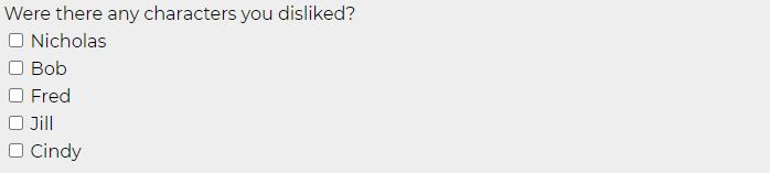 Multi Selection – This type is used if the author wants to provide a pre-set list of choices but the Beta Reader is allowed to select one or more answers from that list.